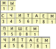 По каждому ответу найди и запиши букву, которая дана в цветной таблице над этим числом.