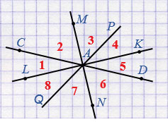 а) Назовите все лучи на получившемся рисунке.