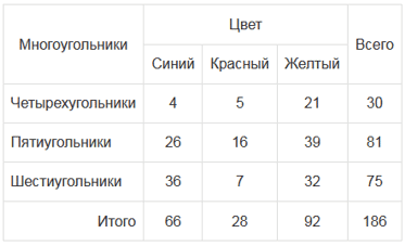 7) 30 + 81 + 75 = 111 + 75 = 186 (мн.) - всего многоугольников.
