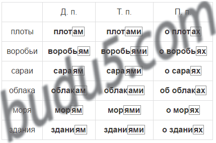 1. Подберите по три существительных мужского и среднего рода и запишите их в дательном, творительном и предложном падежах во множественном числе.