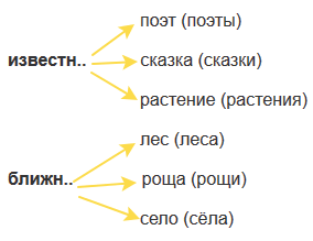 Известный поэт, известная сказка, известное растение. Ближний лес, ближняя роща, ближнее село.