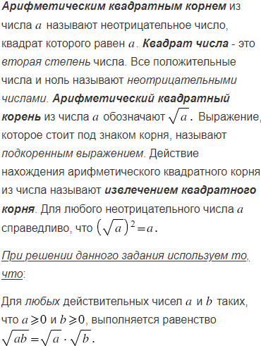 Найдите значение корня:
