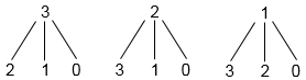 Построим дерево вариантов. В записи двузначного числа первой цифрой (десятки) может стоять любая из трех цифр 3, 2 или 1 (на первом месте не может стоять цифра 0), второй (единицы) - любая из данных цифр, кроме той, которая записана на месте десятков, так как цифры в числе не должны повторяться.