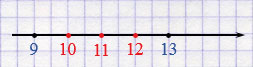 На координатной прямой отметьте числа, координаты которых больше 9 и меньше 13.