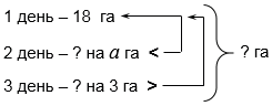 Тракторист засеял поле за три дня. В первый день он засеял 18 га, что на га больше, чем во второй день, и на 3 га меньше, чем в третий. Сколько гектаров засеял тракторист за три дня? Составьте выражение для решения задачи и найдите его значение, если = 4; = 6.