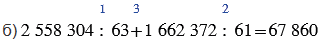 б) 2 558 304 : 63 + 1 662 372 : 61;