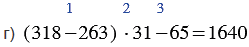 Синие числа, стоящие сверху, показывают в каком порядке нужно выполнять действия.