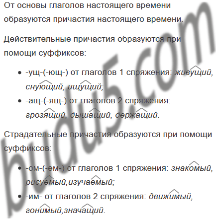 От основы глаголов настоящего времени образуются причастия настоящего времени.
