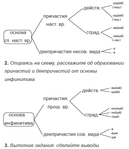 1. От основы глагола настоящего времени образуются причастия настоящего времени и деепричастия несовершенного вида.