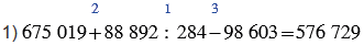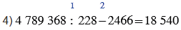 Синие числа, стоящие сверху, показывают в каком порядке нужно выполнять действия.
