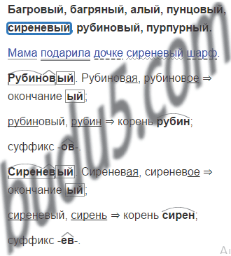 Багровый, багряный, алый, пунцовый, сиреневый, рубиновый, пурпурный.