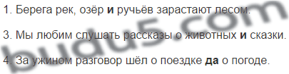 1. Берега рек, озёр и ручьёв зарастают лесом. 2. В нашем лесу растут ёлки, берёзы, дубы. 3. Мы любим слушать рассказы о животных и сказки. 4. За ужином разговор шёл о поездке да о погоде.
