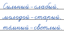 Подберите слова с противоположным значением к данным словам. Запишите.
