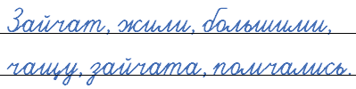Охотник подарил мне двух зайч..т. Они ж..ли у нас на даче. Потом зайчики стали больш..ми. Я отнёс их в ч..щ.. леса. Зайч..та радостно помч..лись на волю.