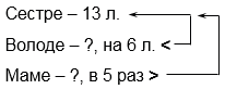 Володя моложе своей сестры на 6 лет и моложе мамы в 5 раз. Сколько лет Володе и сколько лет его маме, если Володиной сестре 13 лет?