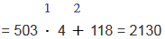 а) 503 + 503 + 503 + 503 + 118 =