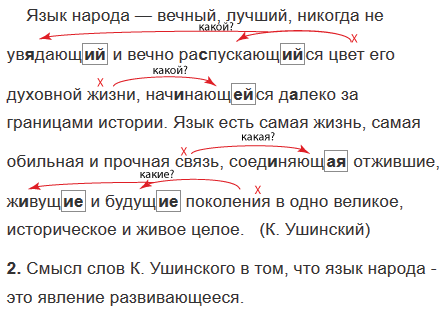 Язык народа — вечный, лучший, никогда не ув..да-ющ.. и вечно ра(с, сс)пускающ..ся цвет его духовной жизни, нач..нающ..ся д..леко за границами истории. Язык есть самая жизнь, самая обильная и прочная связь, со-ед..няющ.. отжившие, ж..вущ.. и будущ.. поколения в одно великое, историческое и живое целое.