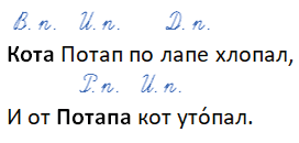 И от Потапа (Р. п.) кот (И. п.) утопал.