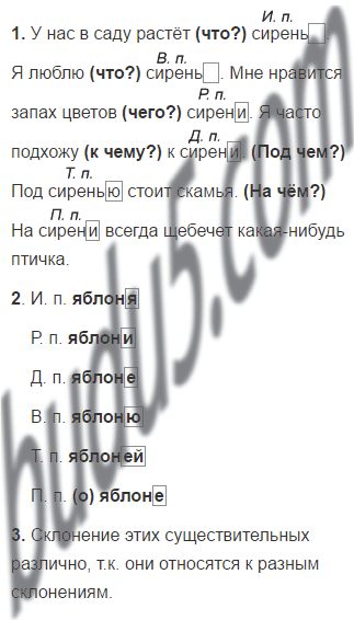 1. Спишите. Поставьте вопросы к слову сирень, определите падежи и выделите окончания.