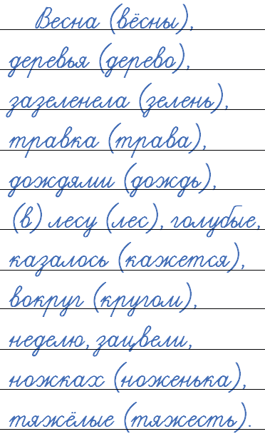 Распустились д..ревья, заз..ленела тра..ка, и тысячи вымытых д..ждями птиц запели в л..су.