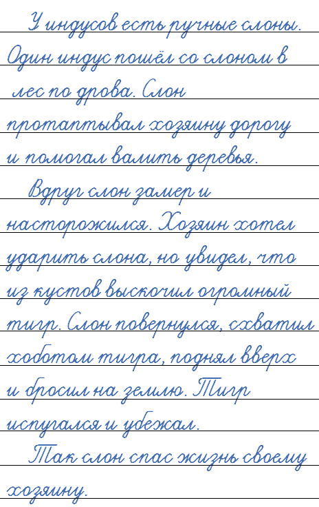 1. (У)индусов есть ручные слоны. Один индус (по)шёл (со)слоном (в)лес (по)дрова. Слон (про)таптывал хозяину дорогу и помогал валить деревья.