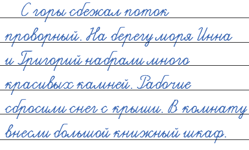 1. С горы (с)бежал поток проворный. 2. (На) берегу моря Инна и Григорий (на)брали много красивых камней. 3. Рабочие (с)бросили снег (с)крыши. 4. (В)комнату (в)несли большой книжный шкаф.