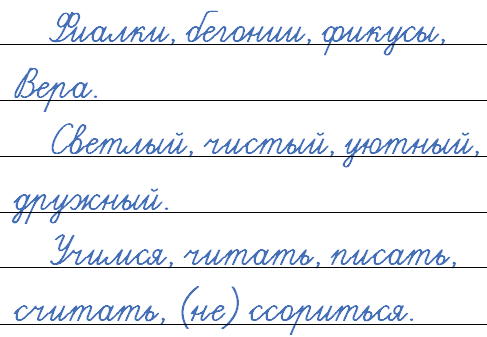 Мы учимся во втором классе. Наш класс очень светлый, чистый, уютный. В нём много цветов: фиалки, бегонии, фикусы. Учительница Вера Павловна научила нас читать, писать, считать и не ссориться. Наш класс очень дружный.