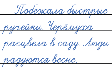 Побежала (какие?) ручейки. Черёмуха расцвела (где?). Люди радуются (чему?).