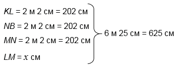 2) Длина ломаной KLMNB равна 6 м 25 см. Отрезки KL, NB и MN равны 2 м 2 см. Найдите длину отрезка LM.