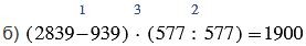 Синие числа, стоящие сверху, показывают в каком порядке нужно выполнять действия.