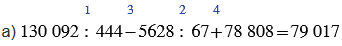 а) 130 092 : 444 - 5628 : 67 + 78 808;