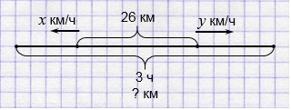 а) Из двух деревень, расстояние между которыми 26 км, одновременно в противоположных направлениях выехали два автобуса. Какое расстояние будет меду ними через 3 ч, если первый автобус проезжает