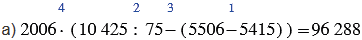 а) 2006 • (10 425 : 75 - (5506 - 5415));
