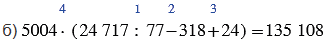 б) 5004 • (24 717 : 77 - 318 + 24);