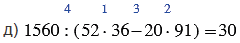 1. если в выражении нет скобок и оно содержит сложение, вычитание, умножение и деление, то сначала выполняют умножение и деление по порядку слева направо, а затем сложение и вычитание по порядку слева направо;