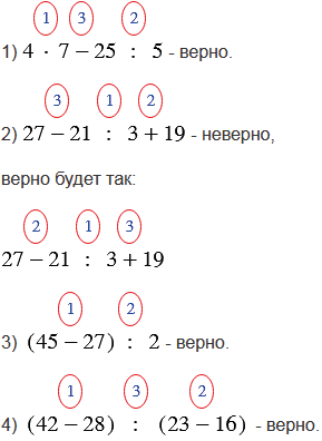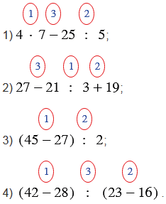 1. Если выражение содержит только действия одной ступени и в нем нет скобок, то действия выполняют по порядку слева направо.