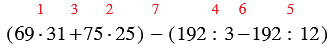 (69 • 31 + 75 • 25) - (192 : 3 - 192 : 12).