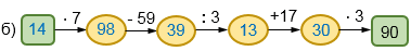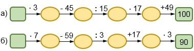 Чтобы определить первое число в цепочке рассуждения начинаем с конца цепочки, двигаясь справа налево и выполняя действия обратные данным в цепочке.
