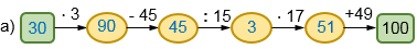 1) 90 : 3 = 30,