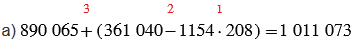Красные числа, стоящие сверху над действиями, показывают в каком порядке нужно выполнять действия.