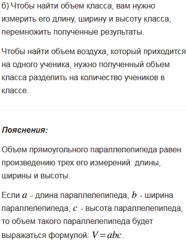 б) Вычислите объем своего классного кабинета. Сколько кубических метров воздуха приходится на одного ученика?