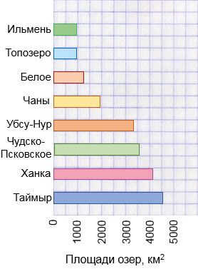 | Озеро | Регион(ы) России | Площадь, км2 | Глубина, м |