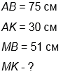 в) расстояние между точками М и K, если АВ = 75 см, АK = 30 см, МВ = 51 см.