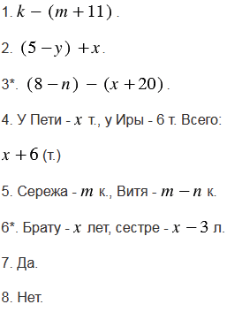 5. Сережа съел "эм" конфет, а Витя - на "эн" конфет меньше. Сколько конфет съел Витя?