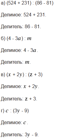 Назовите делимое и делитель в частном: