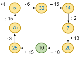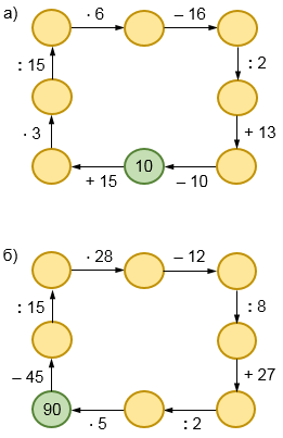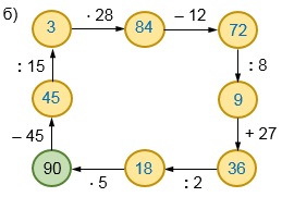 в) 90 - 6 = 84 84 : 14 = 6 6 + 19 = 25 25 • 3 = 75 |