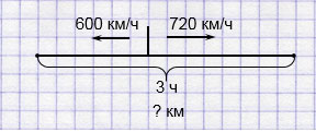 С одного аэродрома одновременно в противоположных направлениях вылетели два самолета. Скорость одного из них равна 720 км/ч, а другого - 600 км/ч. На каком расстоянии друг от друга будут самолеты через 3 ч?