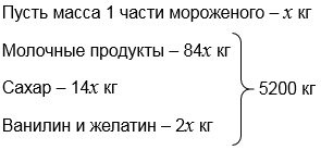 кг. Масса всего мороженого 5200 кг. Получим уравнение: