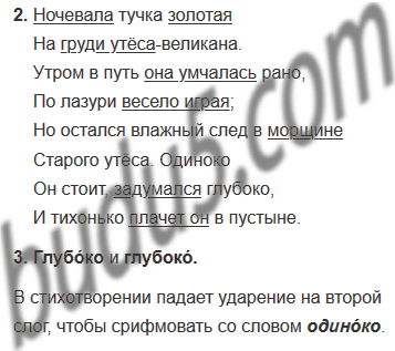 3. Почему в стихотворении в слове глубо́ко ударение падает на второй слог? Можно ли говорить иначе? Как произносите это слово вы?