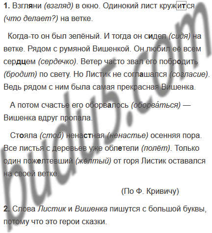 1. Прочитайте выразительно. Объясните интонацию предложений, обращая внимание на паузы, логические ударения, «настроение» текста. Спишите, вставляя пропущенные буквы, раскрывая скобки и подбирая проверочные слова.